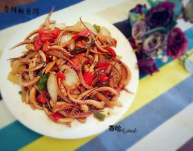 放入鱿鱼,翻炒两分钟,放入耗油,少许盐炒至8分钟