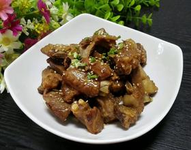 - 6. 加入排骨翻炒,使之均匀上色,再加入姜蒜、八角翻炒出香味