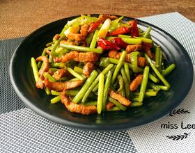 这道蒜薹肉丝选择了猪瘦肉,所以在煸炒时宜小火快速,火过大或者煸炒太久,都容易使肉质变老变柴,失去嫩的口感。