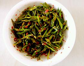 刀豆不要哂大干,干了就不脆了。剁椒是以前做的里面放了盐和油,现做的剁椒也行放点油更好吃