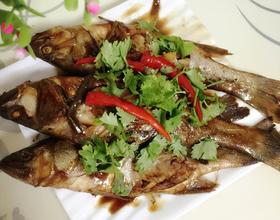然后放入清水,清水没过鱼身,然后放上剩下的葱丝、姜丝,蒜瓣和辣椒,按自己口味轻重放盐和味精