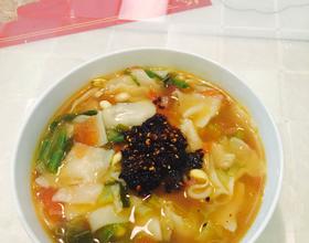 锅里的水开了后,开始揪面片,速度稍微快点,面片不要太大、将面片下锅里后,开始把黄豆芽,豇豆,青菜下锅里,这时开锅两次后就关火,放调料:盐,调料(十三香),海天味极鲜,醋,鸡精……调料的量根据面片和汤的量来决定……