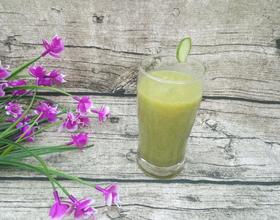 把黄瓜块 苹果块一起放在搅拌杯里,倒入半杯凉白开,冲电搅拌二分钟