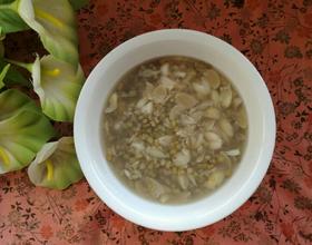 绿豆洗净放入碗中,水高过绿豆3cm左右,放入冰箱提前泡5个小时,(一般前一天晚上泡上第二天早上刚好)。