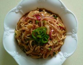 放入豆皮翻炒,均匀淋入料汁,装盘即可