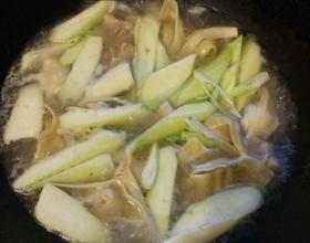 将切好的丝瓜,以及包好混沌放入锅里开煮。