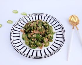 秋葵炒至快熟时,加入味精和鸡精翻炒熟后出锅