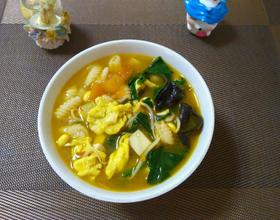 - 12. 麻食煮熟了,倒入提前炒好的鸡蛋,关火放点鸡精。