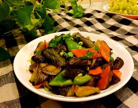 最后下去炸好的茄子块快速翻炒均匀出锅前撒香菜