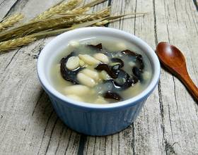 绿豆和花生蒸好的话,另外一个锅里下适量的的先把木耳煮一会,(木耳大的话就要切一下)