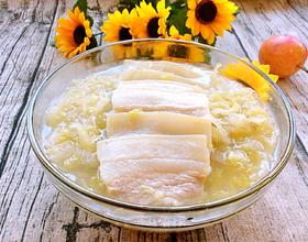 将酸菜和五花肉,同时放入煮五花肉的汤锅里,加适量的盐大火烧开转小火炖三十分钟后,加适量的鸡精炖二分钟即可