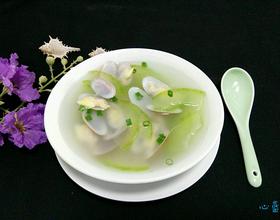 大火煮熟冬瓜给盐,下蛤蜊入锅煮一下即可关火出锅