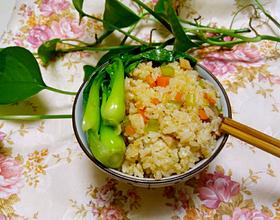 把青菜放到米饭上面,香喷喷的煲仔饭就完成了。
