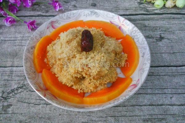 7.把小米和肉拌均,可能有点干,要适量加些温水。看小米均匀的包裹在肉上
