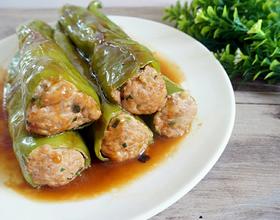 - 9. 主图,用手把辣椒立起,先把辣椒口煎一下封口