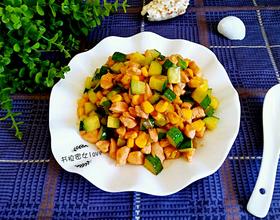 - 8. 肉丁炒熟倒入玉米粒翻炒。