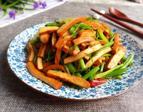 炒香干的时候动作要轻柔,防止香干断裂,影响整体效果。