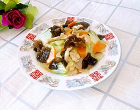 将焯好的木耳,白菜,和生抽,盐,味精倒入锅中快速翻炒1分钟,淋入水淀粉炒匀即熟。
