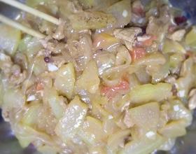 - 6. 依次把冬瓜和粉条分别放锅里,放些盐翻炒!