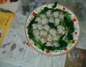 - 4. 锅中加入少许油烧热,加入3碗水,也可以提前把鱼头腌些盐,熬鱼头汤,熬7分钟,将鱼泥捏在右手,从虎口挤出,左手挖到锅里,直到弄完,不会的用搓汤圆的方式搓圆下锅,切几片姜,放进去,煮上6分钟,放适量的盐在汤里,洗些绿叶菜,煮上1分钟,好了。