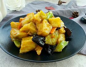 把茄子去皮切滚刀块,木耳洗净撕成小朵,青椒胡萝卜切斜片,姜切片,大蒜剁成蒜末。