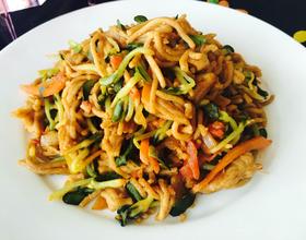 - 2. 西红柿切丝,胡萝卜切丝,圆葱切丁。