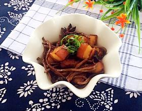 加入姜片同炒倒入适量老抽上色,少量生抽调味,加入一大碗开水。