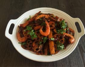 加入大虾撒适量盐大火收干,美味的干锅香辣虾香辣诱人