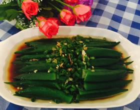 然后倒入装好秋葵的盘中间在浇入生抽即可