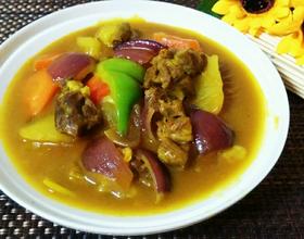 咖喱也可以用现成的块状咖喱,咖喱粉炒一下比较香。