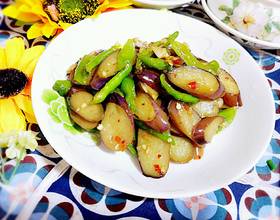 把茄子和青辣椒放入,翻炒大约两三分钟!