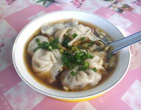 饺子煮开,点一次凉水至饺子浮起,带汤装调料碗里。