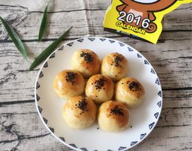 豆沙分成20克10份,把蛋黄裹起来,用面团,包裹起来.