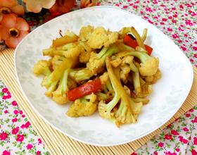 放入菜花快速翻炒
