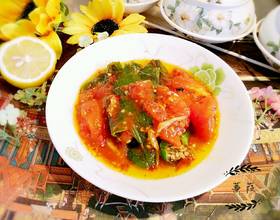 - 6. 辣椒拍一下,西红柿切片,大蒜碎,姜切片,备用!