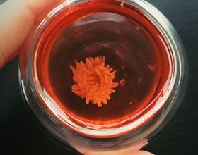 壶中先放入菊花,玫瑰茄,倒入开水微微晃下,倒掉茶水,洗去尘灰