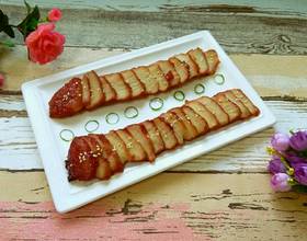 - 11. 装盘放葱丝卷点缀中间,撒上芝麻拍成品图,这个蜜汁叉烧肉汁多肉嫩,喜欢的朋友可以试试