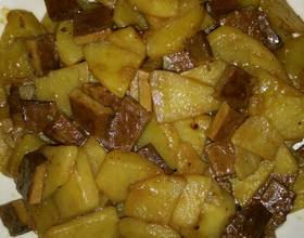 等到土豆的汤汁差不多被吸收了最后加入酱油干翻炒一两分钟左右出锅