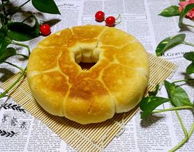 面粉吸水性不同,水要分次添加,面包坯中间要留出空隙,第一次跳起后面包表面没有颜色,翻面后再烤一次即可上色。