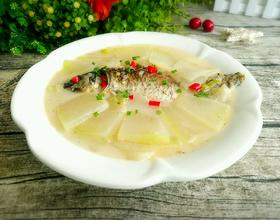 煮好的鲫鱼冬瓜汤,放入胡椒粉,盐,鸡精调味。