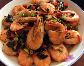 虾放入吵吵吵,变黄色感觉熟了加料酒,酱油,炒均匀,加水加盐焖一会收汁