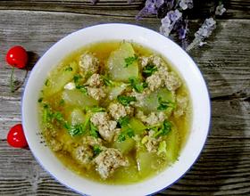 出锅时滴上两滴香油,撒上香菜,一道营养美味的羊肉丸子冬瓜汤就上桌啦!