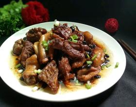 加入豆豉,再加入适量生抽跟少许老抽翻炒均匀。