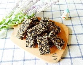芝麻放入糖浆时一定要快速搅拌,否则会黏到锅底被烧糊。