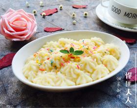 搅拌好后放入滤网上再虑一遍,这样土豆泥会很细腻。