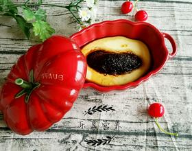 蒸好的蛋糕取出,在海参上淋入适量海鲜酱油和香油即可食用