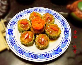 - 6. 拌好的肉馅镶入苦瓜中间;