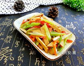 红椒和青椒一样,吃的时候把里面的膜和籽去掉,口感更好呢;芹菜和红椒先焯水能节约烹饪时间,而且短时间炒制能保留菜里的维生素不被破坏;加盐调味要根据自家口味来定。蔬菜已焯至半熟、豆干也是可以直接食用的,所以炒时全程用中火即可。