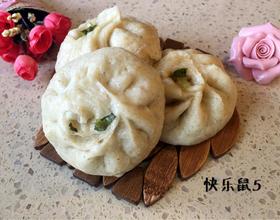 一次包好所有的包子,包子顶部放点儿青菜叶。
