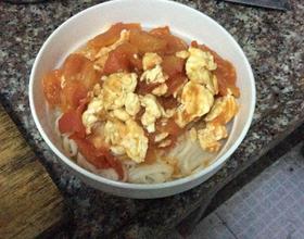 锅内油热放葱,番茄,放盐,十三香,调味料,番茄炒出汁放入鸡蛋